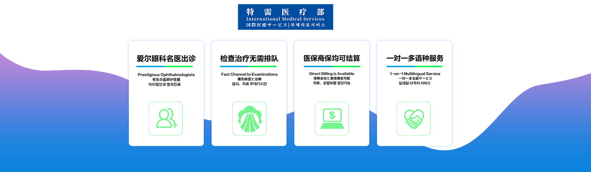 致力于為廣大旅居在上海的有包括支付方式、語(yǔ)言支持、疑難眼病等特需需求的國(guó)內(nèi)外客戶提供高品質(zhì)的眼科醫(yī)療、醫(yī)美服務(wù)。